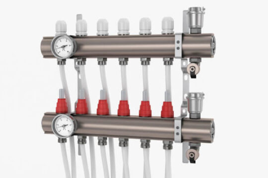 Це єдина труба, до якої підключається багато відводів. Таке підключення дає рівномірний розподіл тиску. Тобто напір однаково потужний як на кухні, так і душі! Також великою перевагою є можливість додавання споживачів, які розміщені на віддаленій відстані від стояка. На кожному відводі є вентиль для перекриття у разі аварійної ситуації. Все інше буде продовжувати працювати!